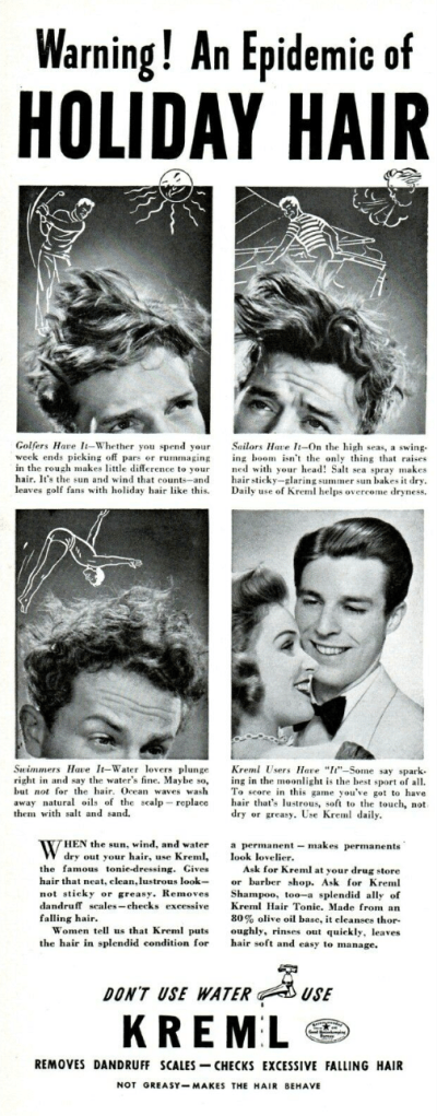 I got out of my helmet and took a spit bath this morning. Twas a little rugged but I kinda needed one. Undy arm odor no end! Even washed my hair. In case you didn’t know, it’s long enough to part again, thank the Lord. My dollar and a half bottle of hair oil is about gone tho so I’ll start looking like one of those Kreml ads. I’d sure like to be able to let you have a crack at it even tho you do push your fingers through the scalp.
