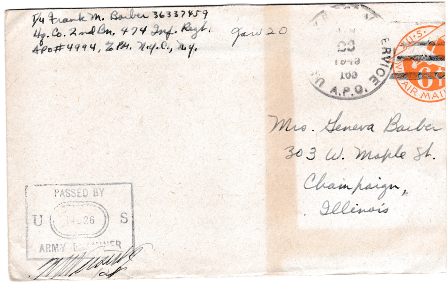Well, honey, guess this is all the news at this end. No more packages yet! Wonder where it is?? Sure love you and miss you.