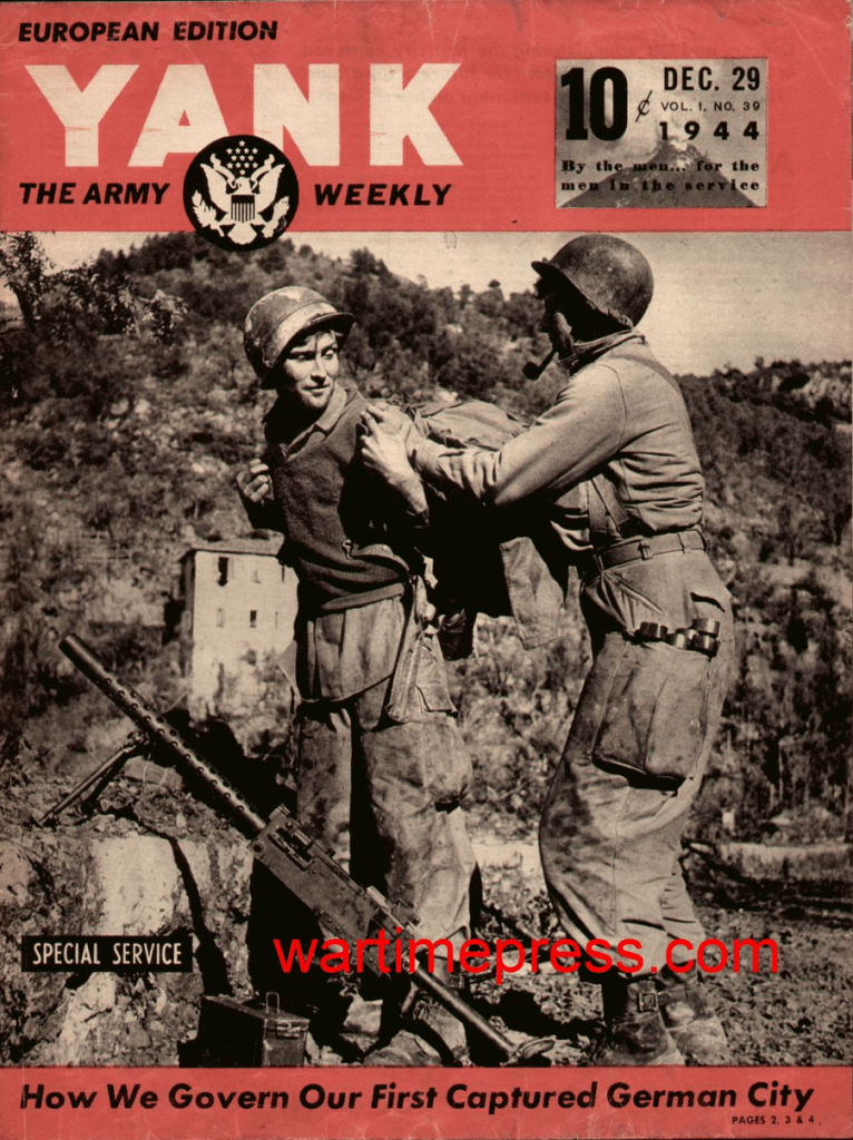Yesterday we also received a Yank magazine that was more or less dedicated to the Force. I am sending it home. I knew a lot of the fellows. The house you see on the front page was right near us. I was in it quite a lot. It is a pretty good article even tho there are a few mistakes in it. I don’t know where they got the idea we were in Florida, do you?