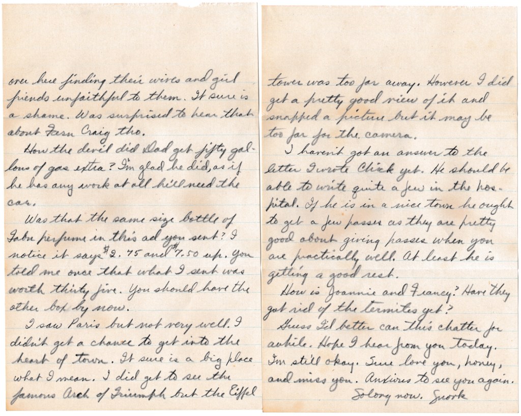 Guess I’d better can this chatter for awhile. Hope I hear from you today. I’m still okay. Sure love you, honey, and miss you. Anxious to see you again.
