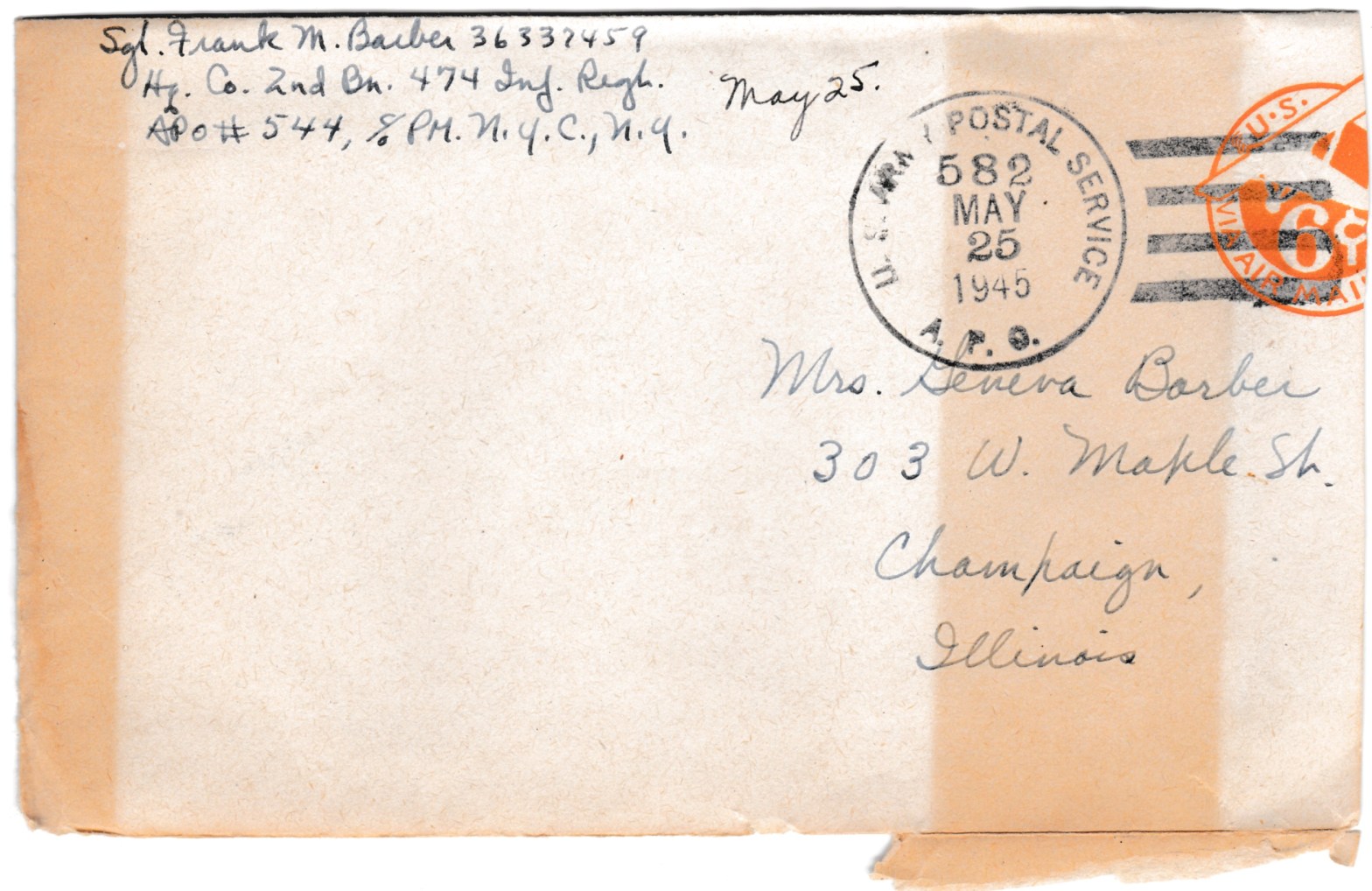 Well, honey, I got an old letter of March 28 from you today, but it was still welcome. Also got a nice v-mail from Coe. She sure has been a peach. She writes whether I do or not. In your letter you were telling me about being over to Kramers’ for Eloise’s party. Boy, that sure was a shame the way it all turned out. I know he probably had a flock of ribbons but that’s the air corp. They must get one every time they go on a mission. I can’t understand anyone having the gall to pull a trick like that. I always told you one was enough — and I haven’t changed my mind any. Have you?