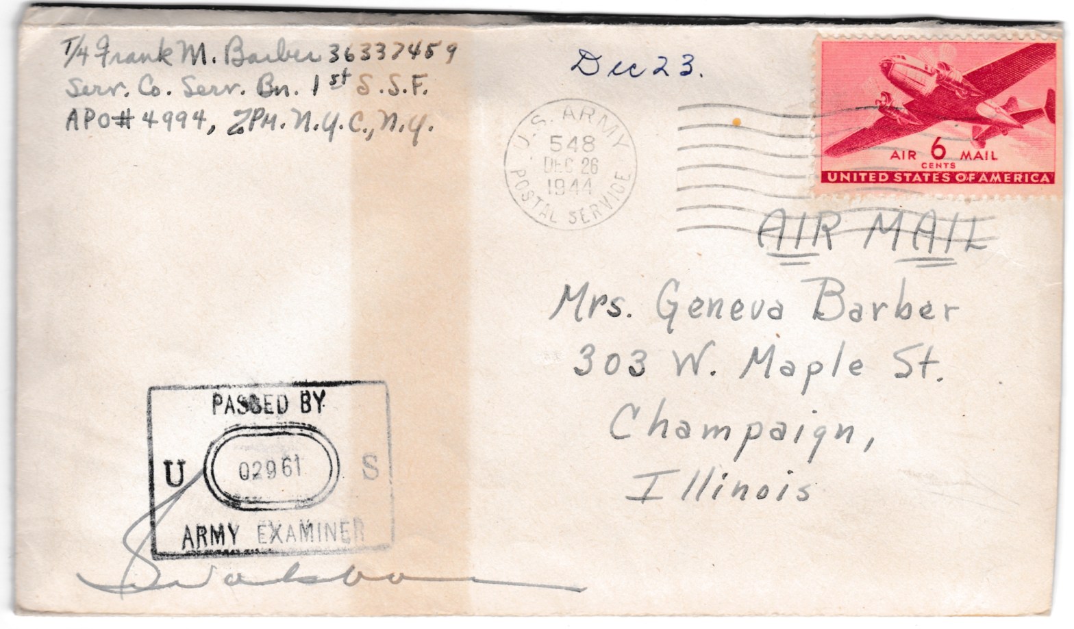 Dearest Gee. Well, kid, I did a little better on the mail today. Got your swell letter of Dec. 6 written on that fancy Christmas stationary. Also got one from Mom of Dec. 5, and a three pager from Erv. Got a nice card from Wally’s sister. She wrote a note on the back ofContinue reading “Wednesday, December 20, 1944”