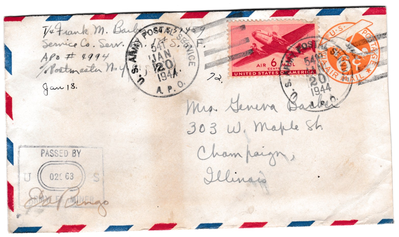 Dearest Gee. Sho’ did hit the jackpot this time. Got eight letters this morning. Three from you, three from Mom (Dec. 11, 20, 25), one from Sis, Dec. 25, and one from Chick of Dec. 9. Yours were two v-mails of 22, 24 Dec. and an airmail of Dec. 16. My morale went up fiftyContinue reading “Wednesday, January 12, 1944”
