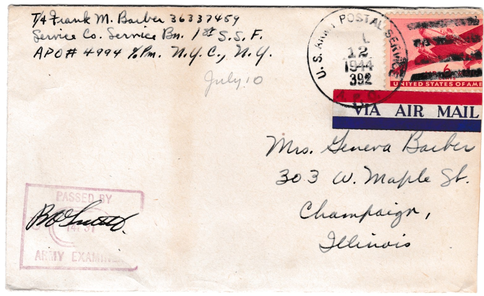 Dearest Gee. Received your “lock of hair” card today and your July 5th airmail. The date on the card was June 13th, that sure has been on the way a long time. You sent it with a three cent stamp but even at that it looks like it should have got here before that. ItContinue reading “Thursday, July 20, 1944”