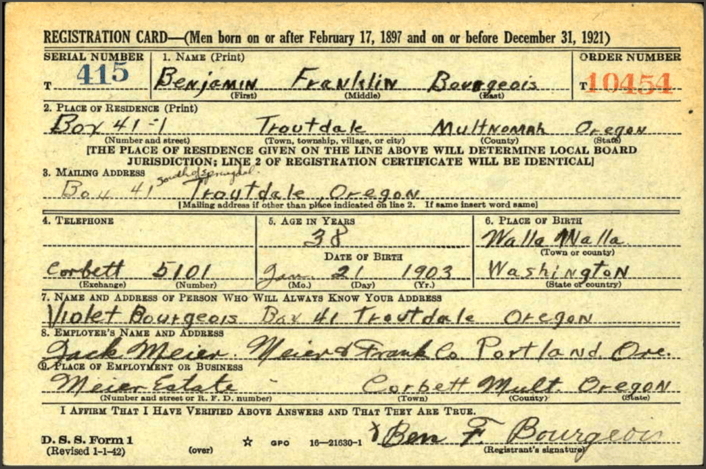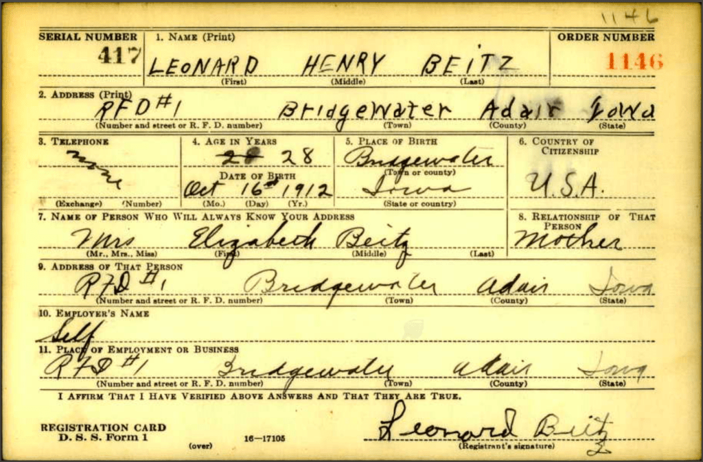 As a technical sergeant (T-4), Snook was responsible for a Service Company platoon of 35 men who were divided into three squads. Photos, draft cards and other info on many of his soldiers are included below. All Service Company mugshot-style photos are from the First Special Service Force Association website, draft cards were found using Ancestry.com, and all additional photos are credited individually.