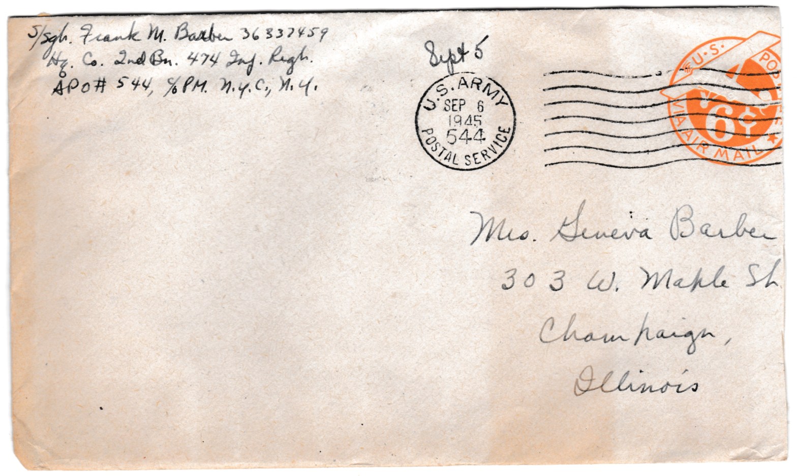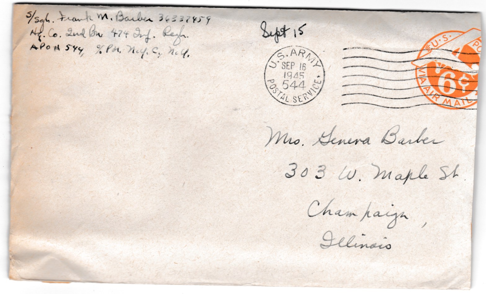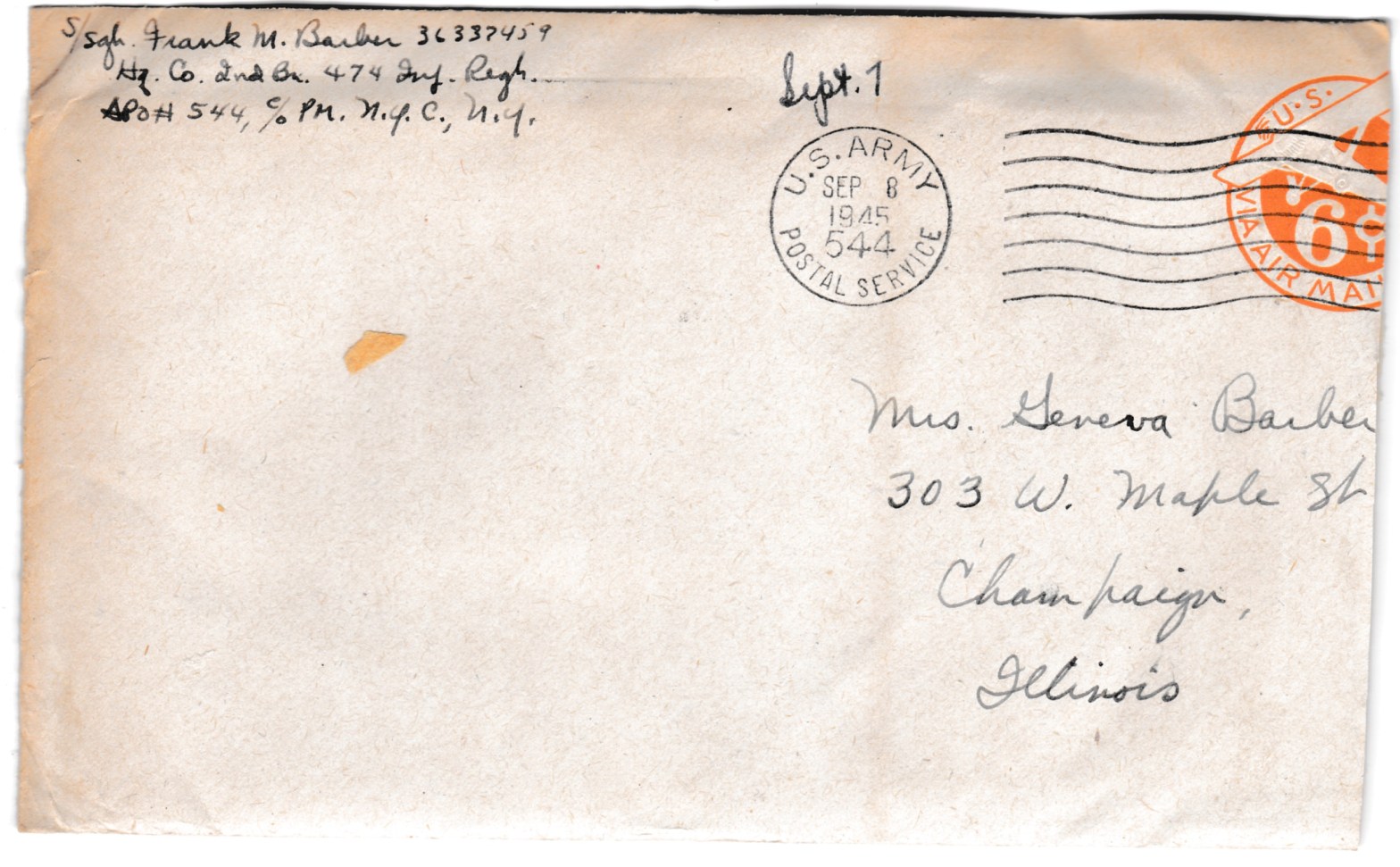 Dearest Gee. Well, honey, that long awaited jackpot hit again today. I got five letters from you and a little package of Molle shaving cream with some funnies. Then I got a nice long letter from Sis and one from Mom. Your letters were all real long ones and were dated Aug. 13, 14, 15,Continue reading “Monday, August 27, 1945”