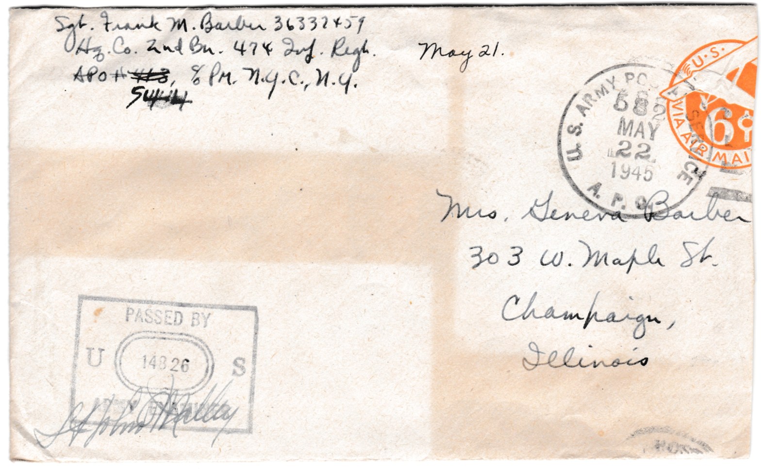 Dearest Gee. I got your April 29 letter today and one from Mom of the 28th — and one back from the censor that I wrote you yesterday. I wrote you two yesterday, this second one I was answering some of your questions and they didn’t like some of the things I said. Someday, kid,Continue reading “Monday, May 21, 1945”