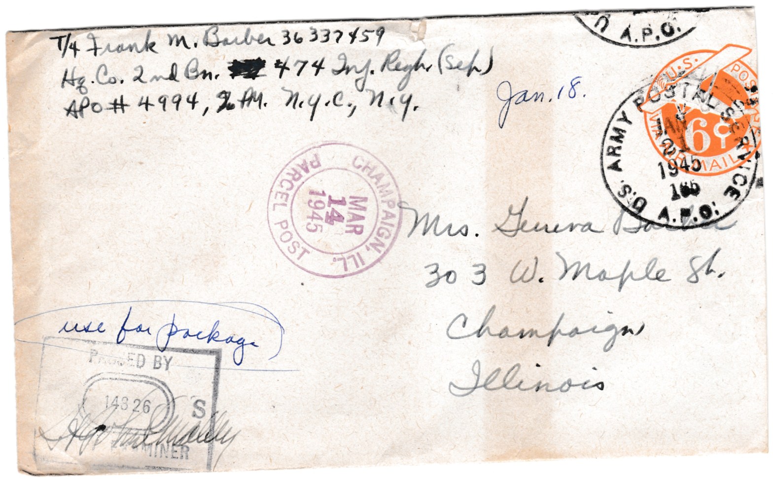 Dearest Gee. Got eleven letters yesterday and one from you the day before so I feel right good. Yours were four air jobbies and a v-mail of the 4, 6, 7, 11th and 12. Got a nice card from Jenny and one from Claude and Mildred. Got v-mails from Mom, Sis, and Mae. Two lettersContinue reading “Wednesday, October 4, 1944”