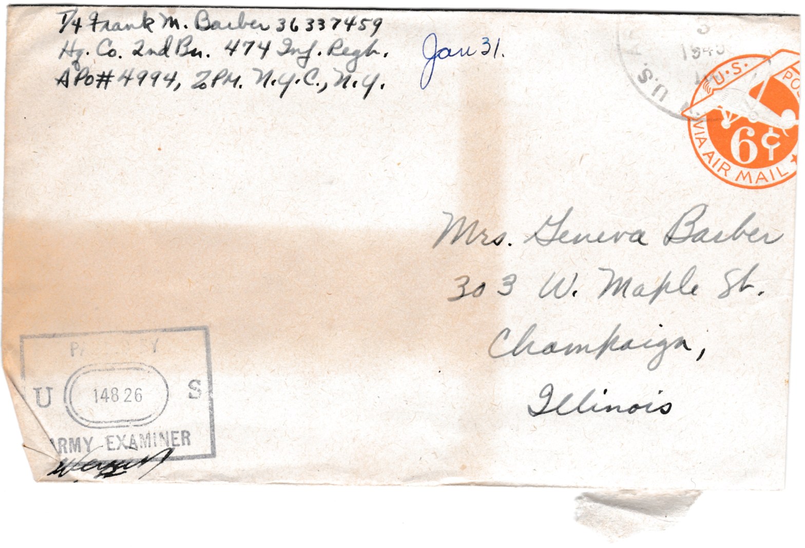 Dearest Gee. Received your v-mail jobs of Dec. 12th today. Kinda old, huh? Also got a letter from Hilah telling me all her troubles, and it sounds as if she has plenty. Then I got a v-mail from Mom. Yesterday I got a card from Aunt Stella and one from the Rumrys of La Salle.Continue reading “Wednesday, January 31, 1945”